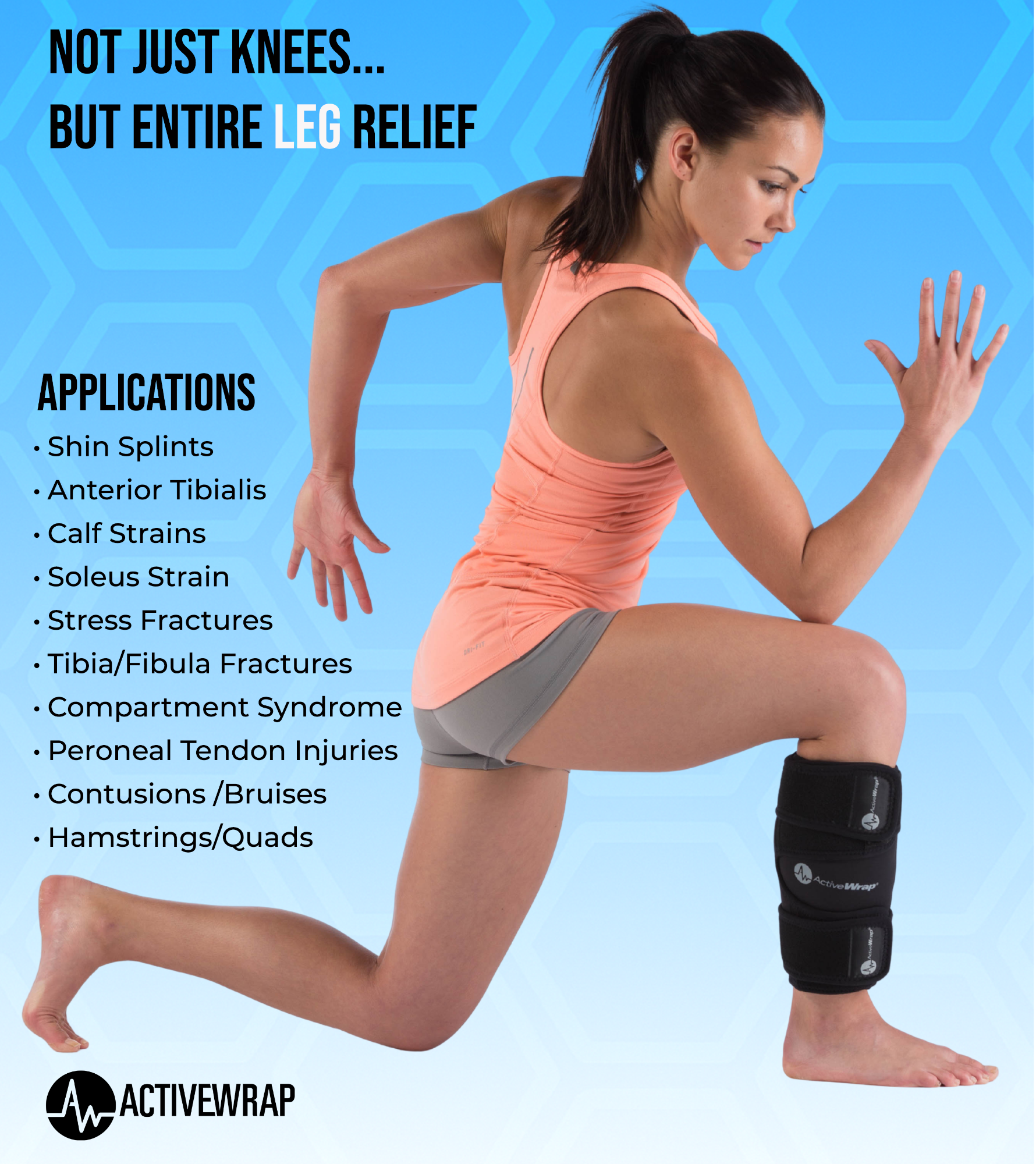 The ActiveWrap® Knee Ice & Heat Wrap is the all-in-one solution for knee pain relief. ActiveWrap® combines heat, ice, and compression therapy in an easy-to-use portable design. Unlike cold therapy machines or stiff ice pack alternatives ActiveWrap® allows you to move freely preventing stiffness and promoting better recovery. Whether you’re recovering from surgery, dealing with sports or work related injuries, or just looking to reduce daily aches and swelling, this versatile heat and ice wrap is built to deliver results. Designed by physical therapy professionals, the wrap features soft, flexible gel packs that remain pliable when frozen, providing deeper, more consistent coverage and staying cold longer than standard cold packs or hydrogel ice sleeves. The modular ice pack design allows you to target pain exactly where you need it—front, back, sides of the knee, or even the calf, shin, and hamstring. Whether at home or on the go, the ActiveWrap® Knee Ice & Heat Wrap makes continuous, natural pain relief simple and stress free.